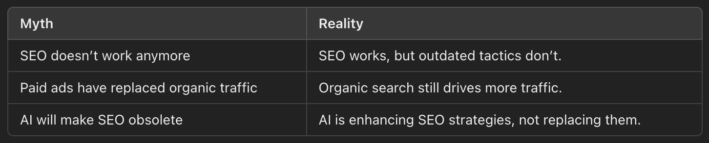 Let me break down why this myth exists, how SEO has evolved, and why it’s still a powerful tool for driving growth.