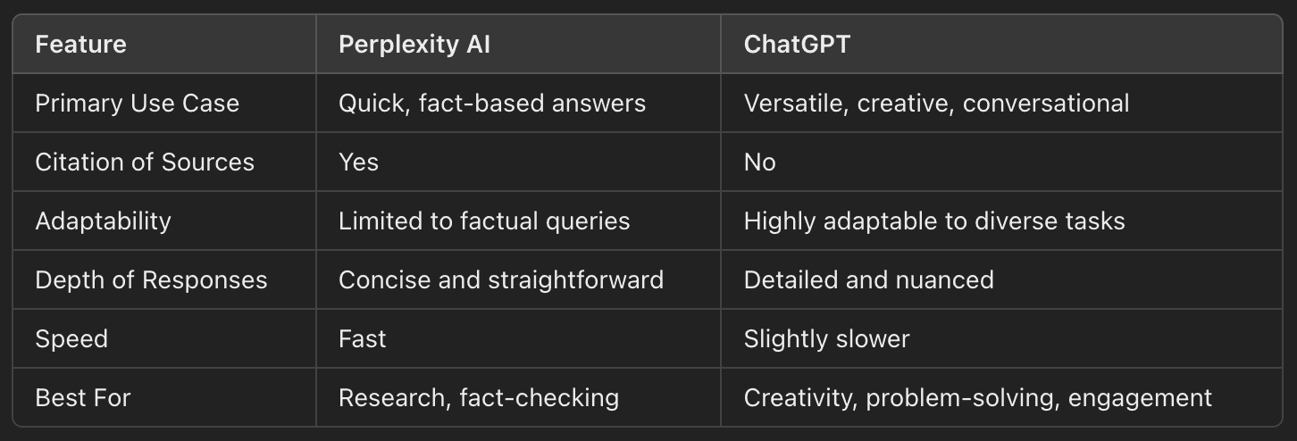 Comparison: Perplexity AI vs. ChatGPT