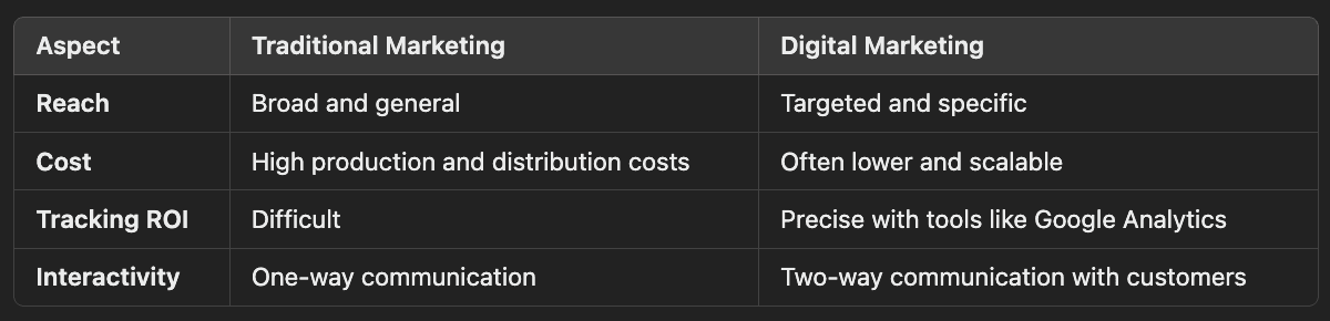 Data-Driven Decisions: Digital marketing allows for real-time data collection and campaign optimization.